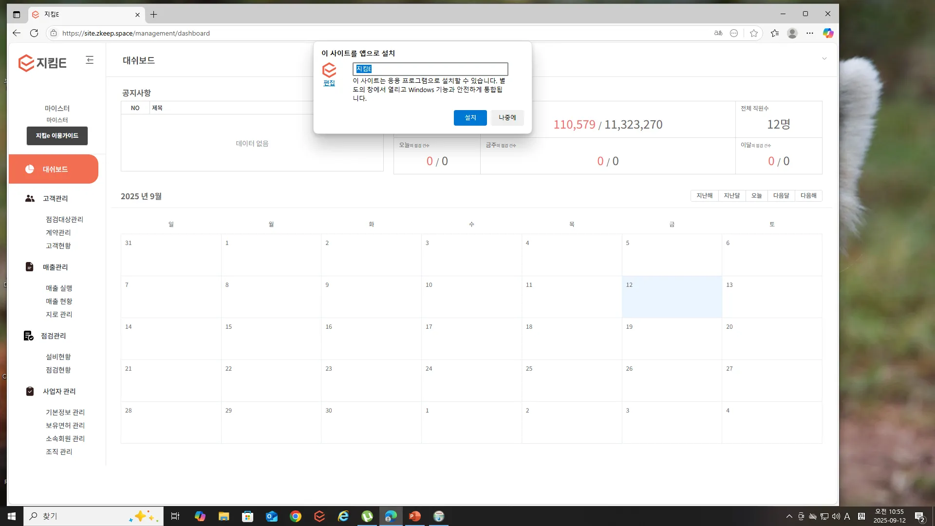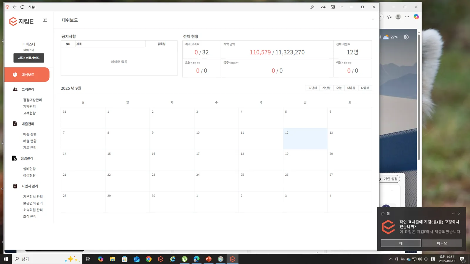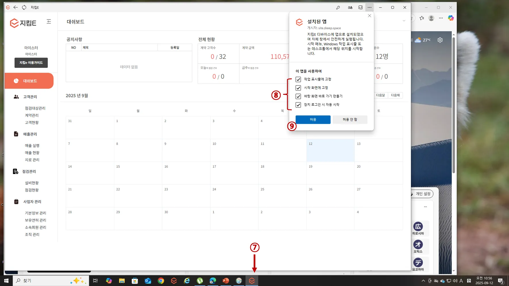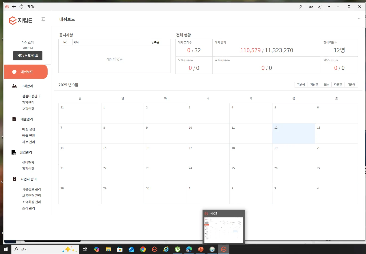 작업표시줄의 “지킴E 웹 앱”을 클릭시, 정상적으로 관리자 웹 화면이 보이면 정상 설치 완료