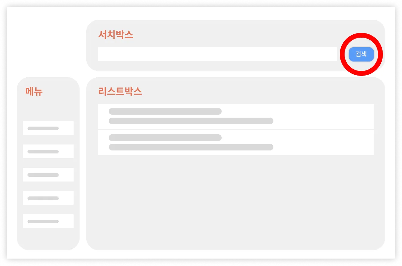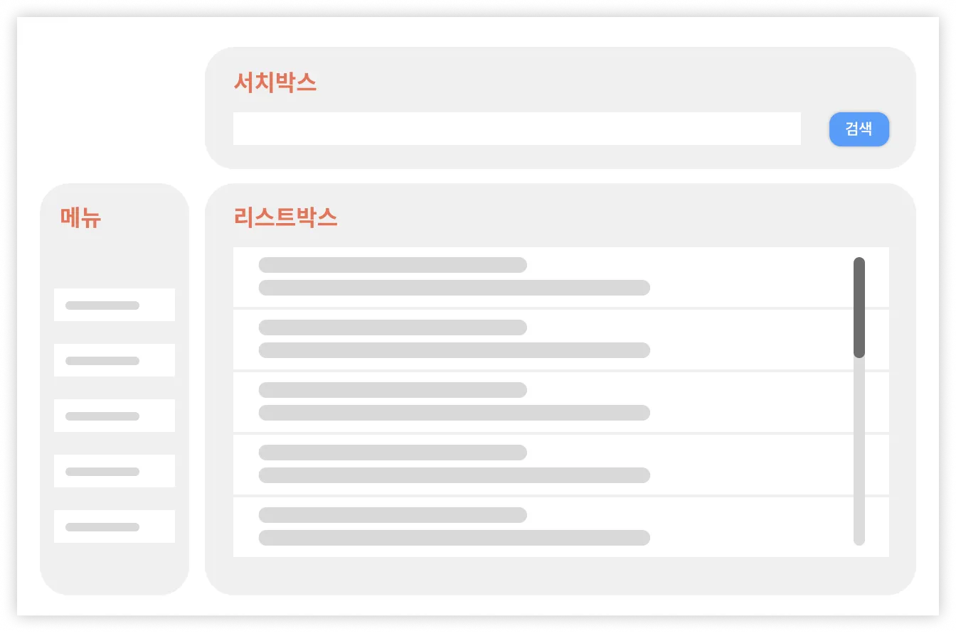 서치박스에 조건과 내용을 입력하면 리스트박스에서 조건에 맞는 데이터가 필터링되어 표시됩니다.