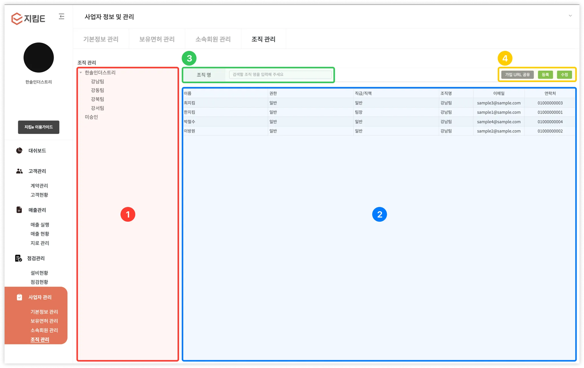 조직관리 페이지