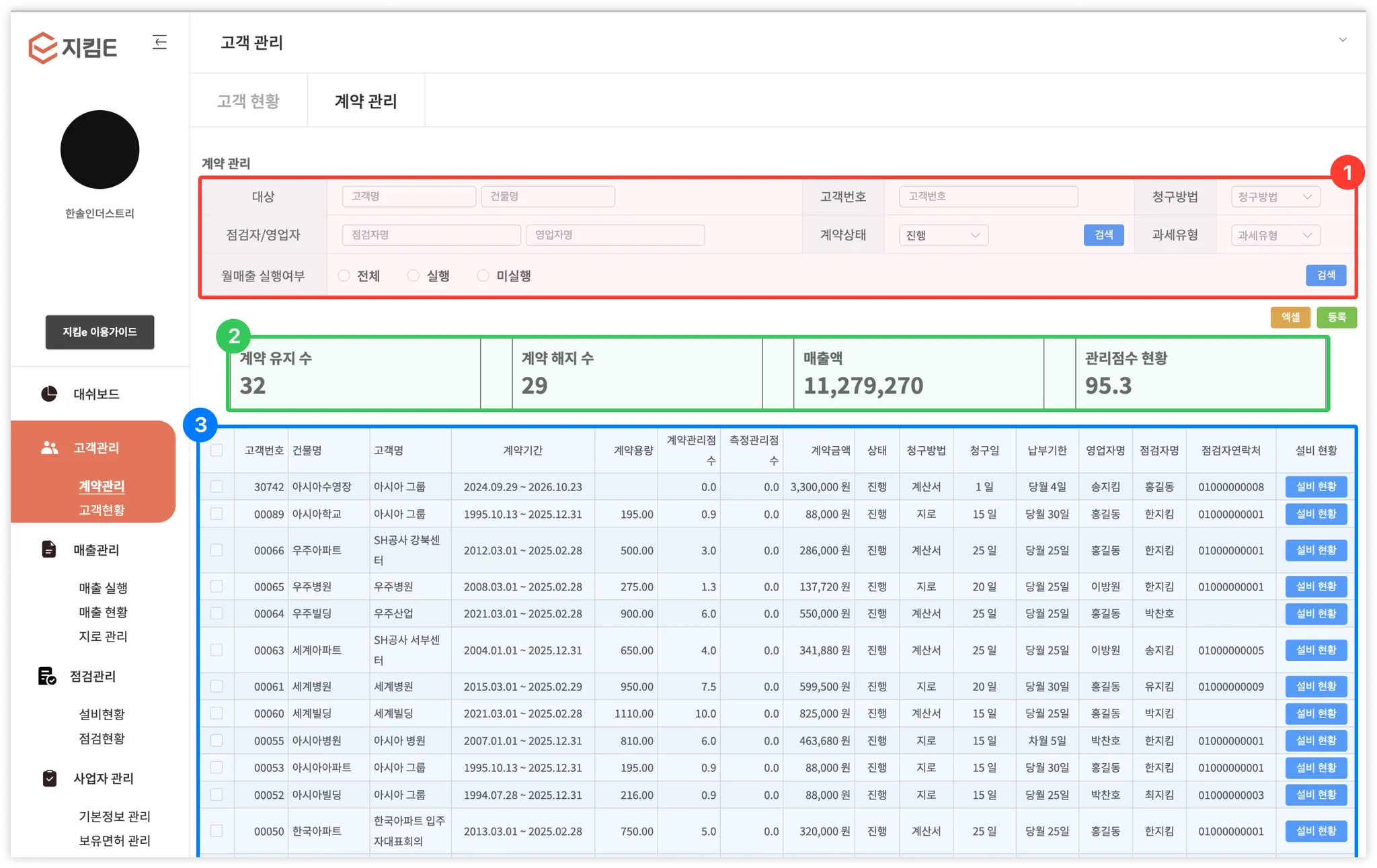 지킴E 시스템에서 자동 부여되는 고유 식별 번호로, 모든 계약 정보를 체계적으로 관리하는 기준이 됩니다.