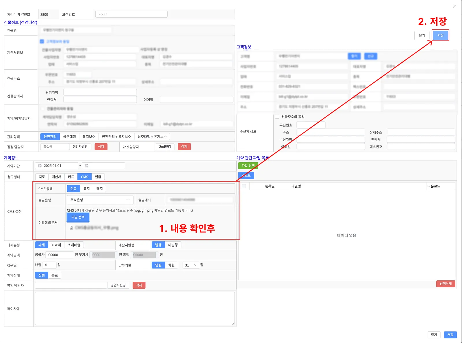 지킴E의 CMS 청구 기능은 청구서 발행 → 출금 요청 → 출금 결과 확인까지의 과정을 자동화하여 수납 업무를 간편하게 만들어 줍니다.